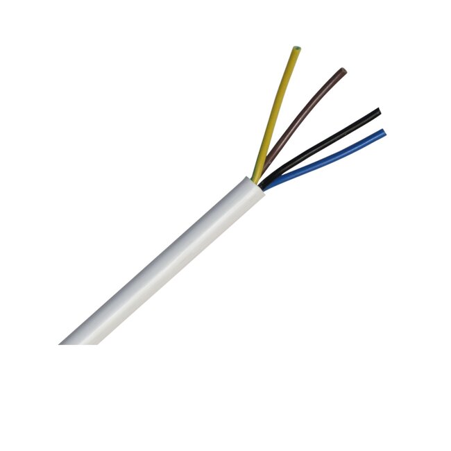 Flexibles 4 x 0,75mm2 weißes Stromkabel um zum Beispiel das Motorkabel eines Buismotors zu verlängern. Dieses Kabel ist geeignet für feuchte Umgebungen. Sowohl die Isolation als auch die Mantel sind aus PVC.