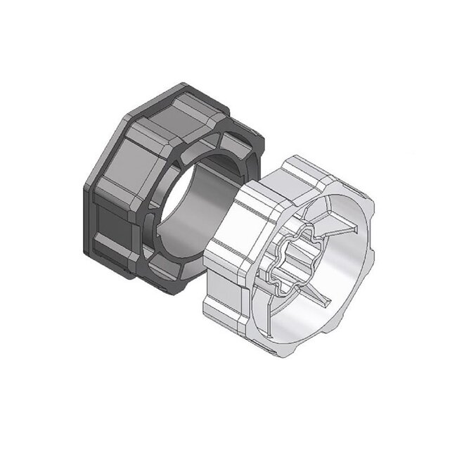 The adapter set consists of two essential components: the adapter and the carriage. The adapter is located on the motor wire side and plays a crucial role in a tubular motor because it ensures that the tubular motor's adjustment functions. On the head side of the tubular motor you will find the carriage, which is responsible for the solid connection between the Axle/Shaft and the tubular motor.