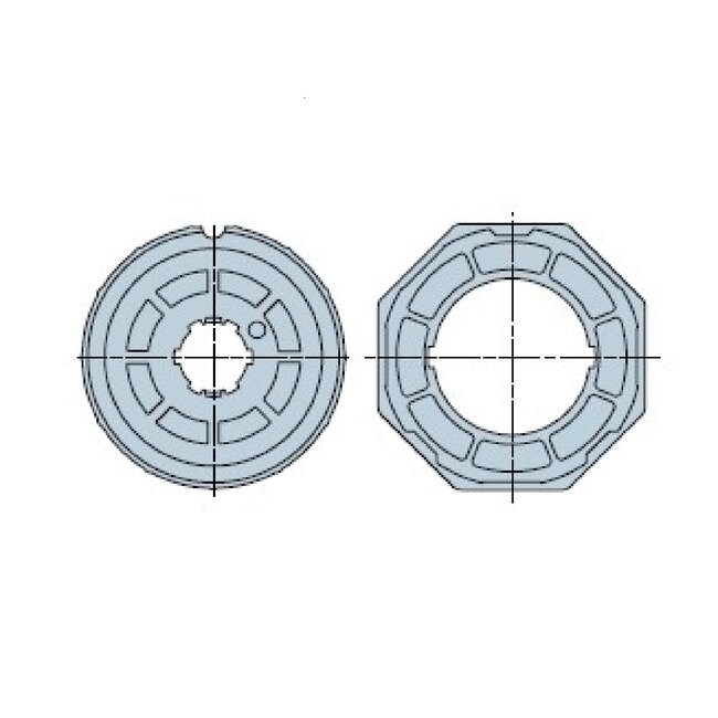 The adaptation set for a shaft Ø 102x2 mm, for the Nice Era L and LH series, makes it possible to adapt a Nice roller shutter motor or sun blind motor to a round tube with an outer diameter of 108 mm and a wall thickness of 2 mm and with a fabric groove. .