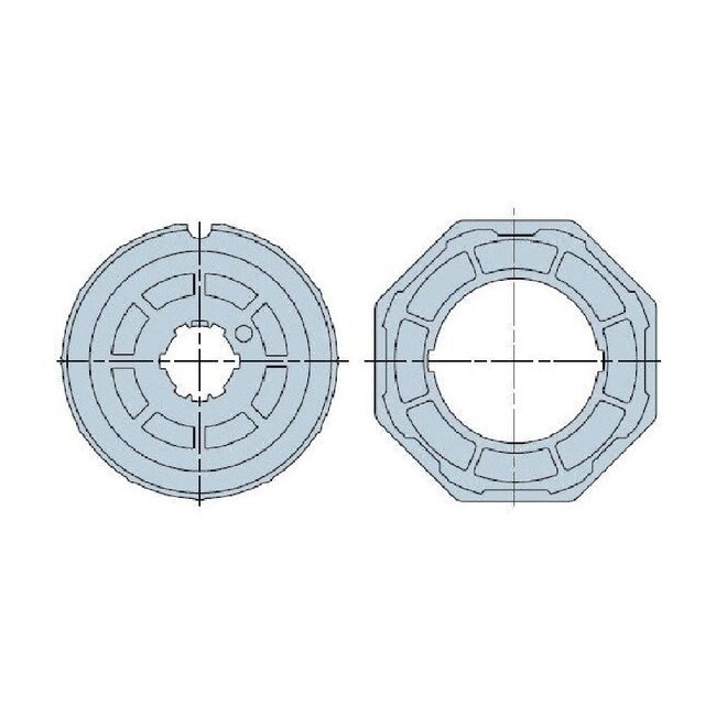 Le jeu d'adaptateurs pour un axe Ø108x3,5 mm, pour les séries Nice Era L et LH, permet d'adapter un moteur Nice pour volets roulants ou stores à un tube rond d'un diamètre extérieur de 108 mm et d'une épaisseur de paroi de 3,5 mm, équipé d'une fente pour toile.