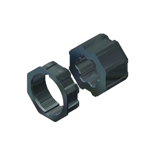 Le kit d'adaptation pour un tube octogonal de 60 mm, adapté aux moteurs tubulaires Faac TM2 45 et TM2 45 M, permet d'adapter un moteur d'obturateur Faac TM2 45 à un tube à 8 côtés d'un diamètre extérieur de 60 mm (mesuré d'un côté plat à l'autre) et d'une épaisseur de paroi de 0,8 à 1,20 mm.
