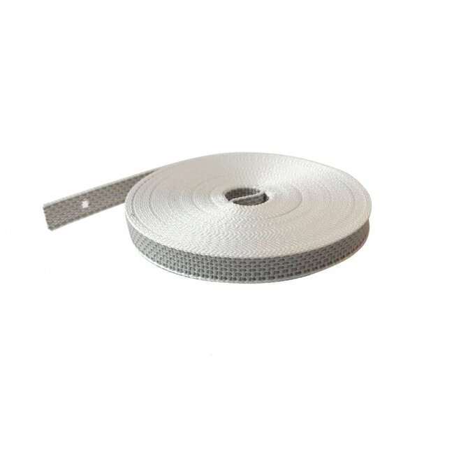 Selve 14 mm optrekband of rolluikband voor rolluiken of zonwering, het band is 14 mm breed, 11 meter lang en heeft reeds gaten voor bevestiging aan bandopwinder en haspel op de as. Het band is verkrijgbaar in de kleuren grijs, zwart/wit, zwart, bruin en c Lees meer.